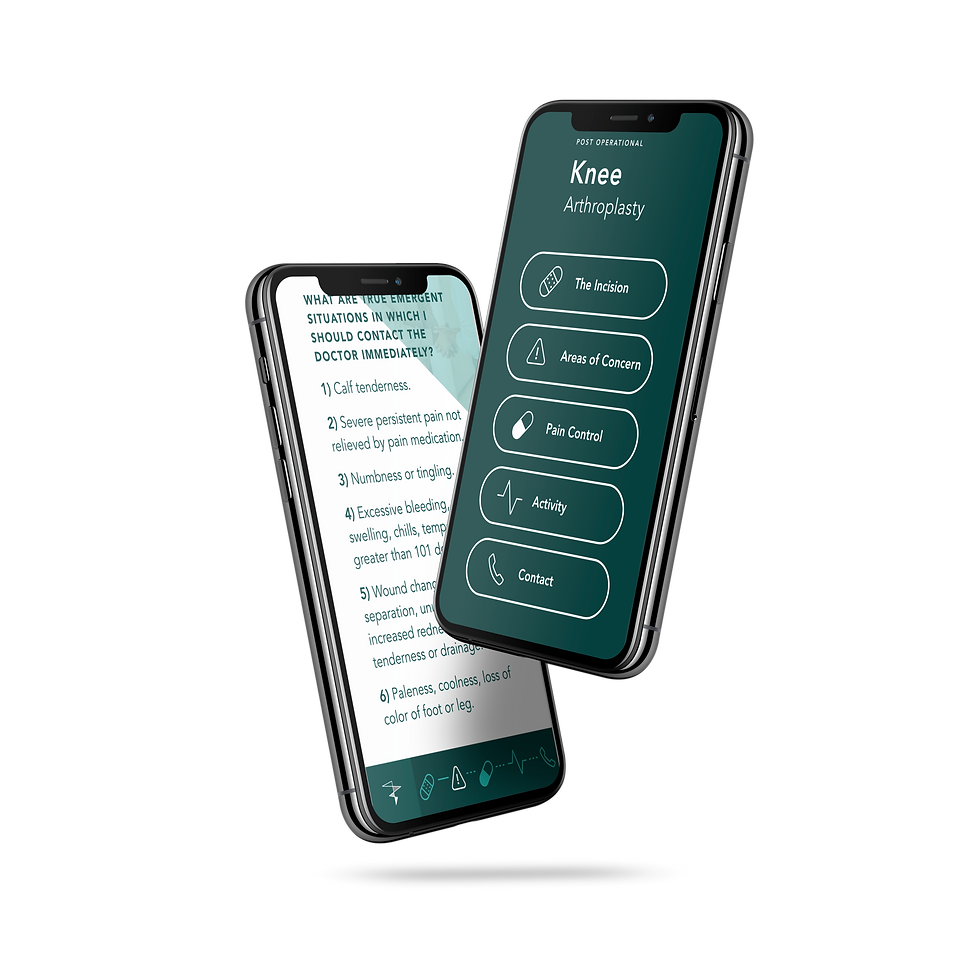 My goal was to create a visually appealing and easy to use app. One of the biggest issues in creating the app ironically enough was the large paragraphs of information. I didn't want users to feel as if they were just scrolling through large paragraphs of text. After breaking up all the information into pre-op, surgery information, post-op and long term, was breaking down the larger portions of information. Which we did with titles, dividers and visuals. It made the larger paragraphs easier to digest and not as monotonous.